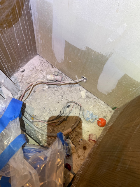 Identified and removed burned wire in conduit as part of an unused third diagnostic. Discussed options for replacing the damaged interior GFCI and reviewed safety sheet recommendations, including membership and service options. Proceeded with Option 3. Returned to site to complete remaining work, which included repiping one circuit and repairing final components to prevent GFCI from tripping in the outlet space.
