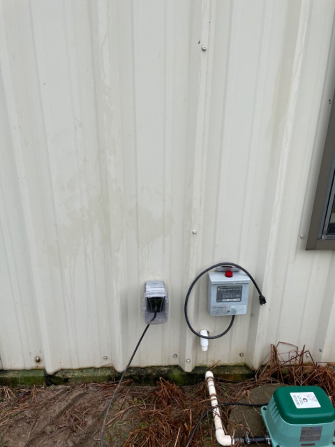 Inspection performed on electrical service requiring replacement on a pole. Service contains two feeds: one to a mobile home and one to a shop. Shop feed is illegally installed through the air and the shop contains multiple electrical issues, requiring consideration of a partial rewire. Feed to the home is missing a ground. Option to install underground service may be possible, pending approval from Demco. Home is experiencing intermittent power loss on half of the system when the pole shifts.